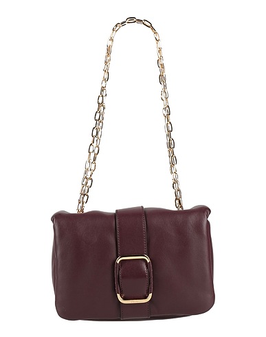 flap bag, leather, plain colour, brand logo, magnetic fastening, fully lined, internal pocket, double handle, medium size, contains non-textile parts of animal origin