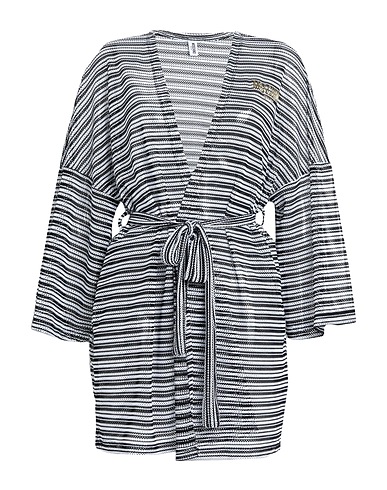 plain weave, brand logo, belt, stripes, 3/4 length sleeves, no pockets, stretch