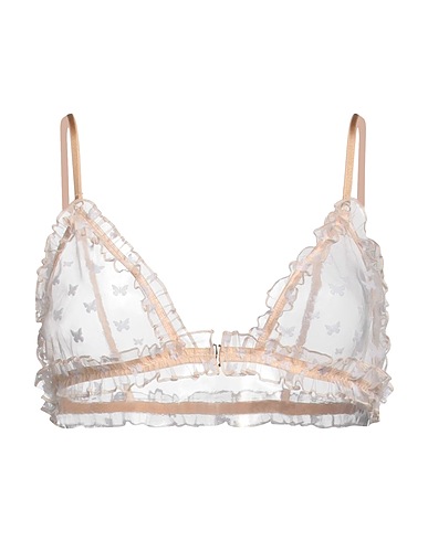 tulle, ruffles, embroidered detailing, two-tone, hook-and-eye closure, triangle cup bra