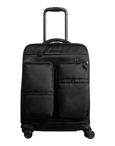 carry-on, shell, plain colour, coated fabric trims, brand logo, fully lined, zip fastening, four wheels, soft shell