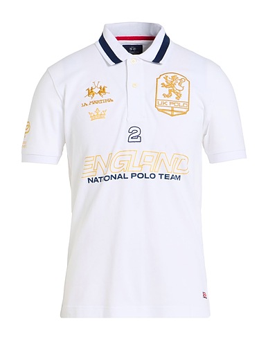 piqué, stretchy fabric, plain colour with appliqués, embroidered logo, metallic trim, print, buttoned neckline, short sleeves, side slit hemline, machine wash, do not bleach, do not tumble dry