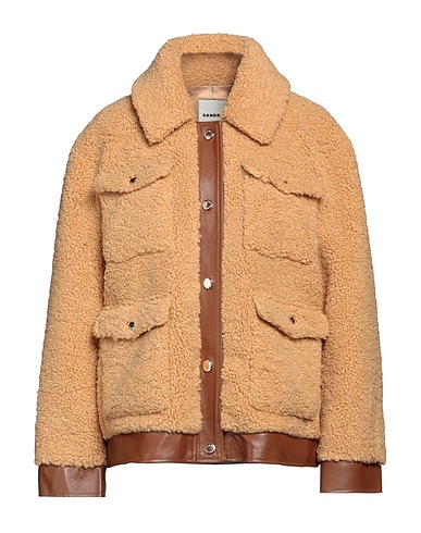 single-breasted blazer, sherpa, leather, no appliqués, two-tone, classic collar, single-breasted , long sleeves, snap-fastening cuffs, fully lined, snap fastenings, multipockets, contains non-textile parts of animal origin