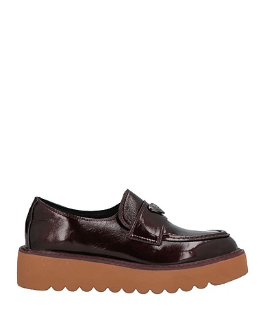 loafers, synthetic material, patent-effect, plain colour, brand logo, fully lined, round toe, flatform, rubber sole