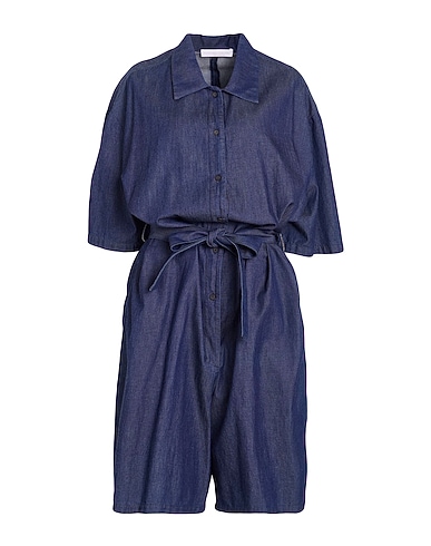 denim, plain colour, dark wash, belt, embellished, classic collar, short sleeves, button fastenings, slit pockets, machine wash or dry clean, do not bleach, tumble dry