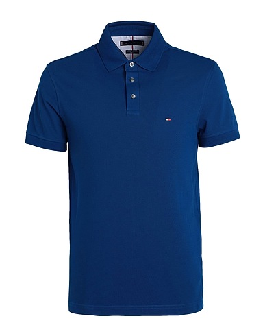 piqué, stretchy fabric, solid color, embroidered logo, buttoned neckline, short sleeves, button fastenings, side slit hemline, machine wash, do not bleach, do not tumble dry