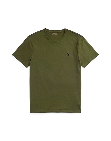 basic tee, jersey, solid color, brand logo, crewneck, short sleeves, machine wash, do not tumble dry, this brand runs large