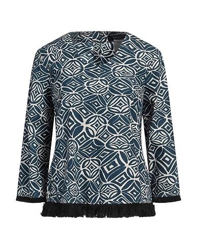 plain weave, fringes, brand logo, two-tone, crewneck, long sleeves, snap buttons fastening, no pockets
