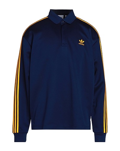 piqué, solid color with appliqués, side seam stripes, brand logo, buttoned neckline, long sleeves, side slit hemline, lifestyle, this brand runs large