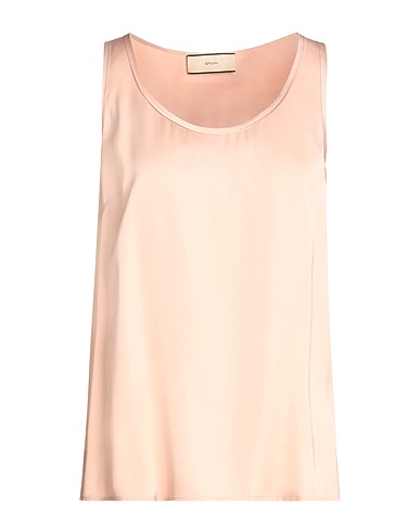 top, satin, solid color, no appliqués, crewneck, sleeveless, side slit hemline
