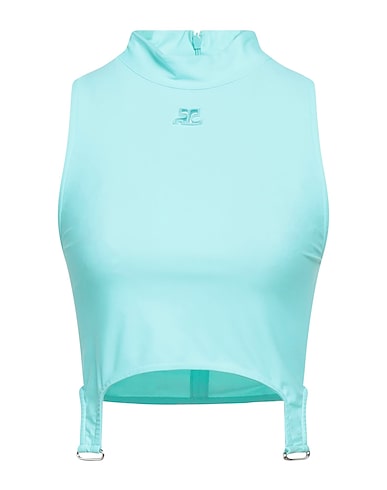 synthetic jersey, brand logo, embellished, solid color, crewneck, sleeveless, zipper fastening, no pockets, stretch, crop top