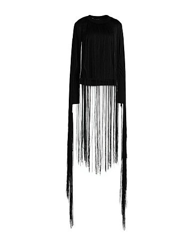 jersey, fringes, solid color, crewneck, long sleeves, without pockets, top