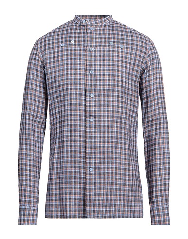 woven, detachable application, checked, mandarin collar, long sleeves, button fastenings, no pockets, regular-fit shirt
