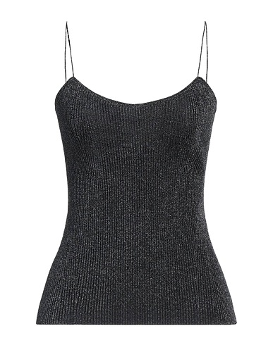 knitted, lamé, lightweight knit, no appliqués, solid color, v-neck, sleeveless, no pockets, stretch, camisole