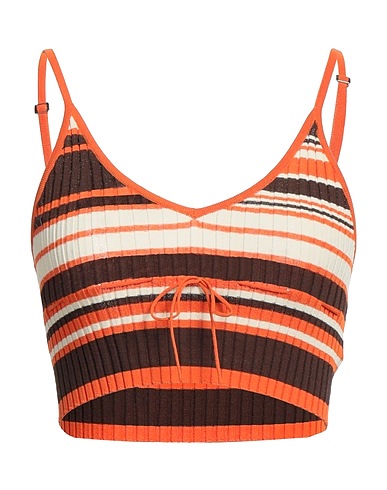 knitted, lightweight knit, no appliqués, striped, deep neckline, sleeveless, no pockets, crop top