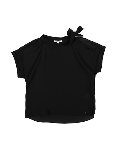 crepe, brand logo, solid color, bow-tie neckline, short sleeves, no pockets, wash at 30° c, dry cleanable, do not bleach, do not tumble dry, iron at 110° c max