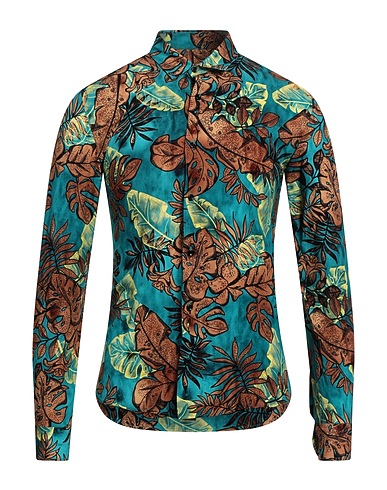 satin, no appliqués, floral-print, classic collar, long sleeves, buttoned cuffs, button fastenings, no pockets, regular-fit shirt