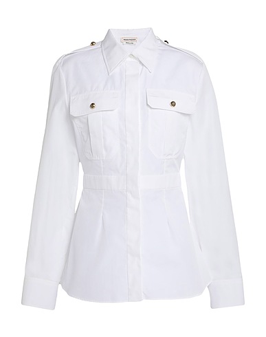 woven, tabs, solid color, classic collar, long sleeves, button fastenings, two chest pockets, dry clean, do not bleach, do not tumble dry, safari shirt