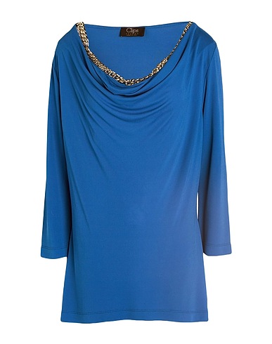 jersey, embellished, solid color with appliqués, draped neckline, long sleeves, without pockets, machine wash or dry clean, do not bleach, do not tumble dry, top