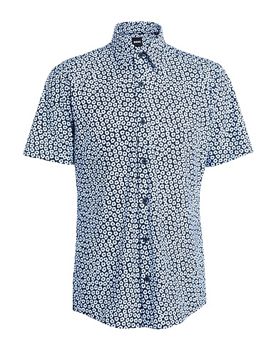 synthetic jersey, no appliqués, floral-print, classic collar, short sleeves, button fastenings, stretch, machine wash, do not tumble dry, slim-fit shirt