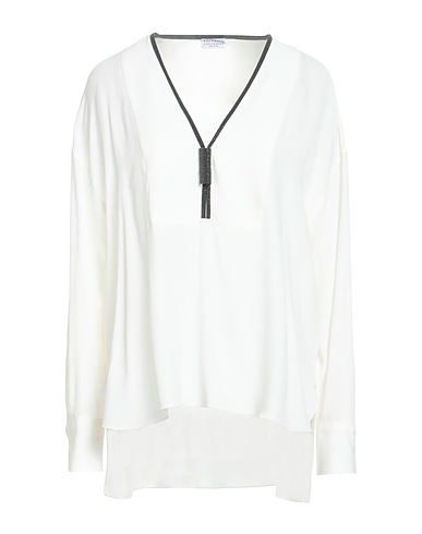 crepe, embellished, solid color with appliqués, v-neck, long sleeves, buttoned cuffs, without pockets, asymmetric hem, contains non-textile parts of animal origin, dry clean, do not bleach, do not tumble dry, top