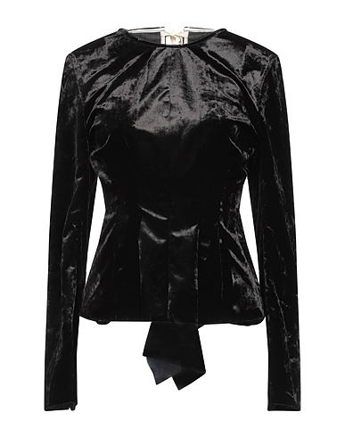 top, velvet, solid color, no appliqués, crewneck, long sleeves, tie fastening, hand wash or dry clean, do not bleach, do not tumble dry