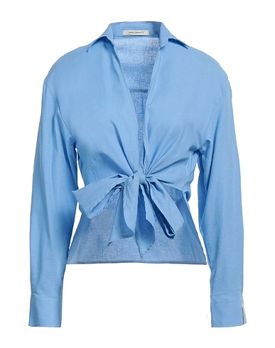 shirt, woven, solid color, brand logo, deep neckline, long sleeves, tie fastening, machine wash or dry clean, do not bleach, do not tumble dry