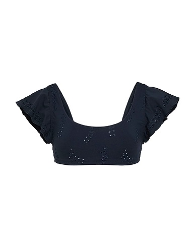 crop top, broderie anglaise, solid color, no appliqués, deep neckline, sleeveless, hook fastenings, stretch, machine wash or dry clean, do not bleach, do not tumble dry