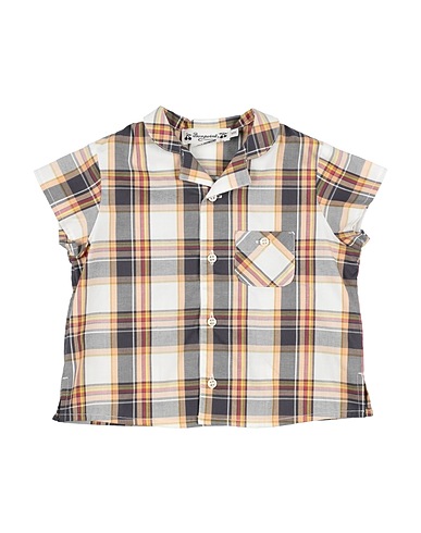 woven, tartan pattern, no appliqués, camp collar, short sleeves, button fastenings, one chest pocket, machine wash or dry clean, do not bleach, do not tumble dry