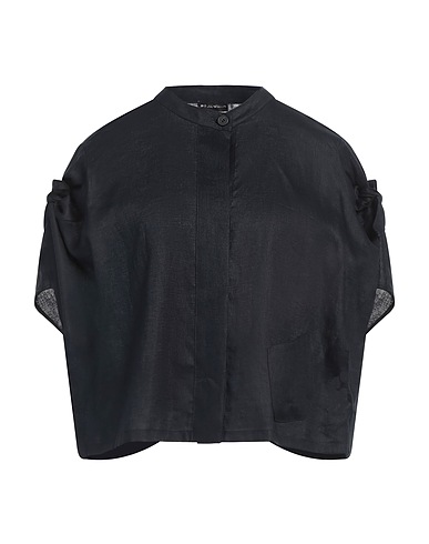 shirt, woven, solid color, bow-detailed, mandarin collar, short sleeves, dry clean, do not bleach, do not tumble dry, this brand runs small