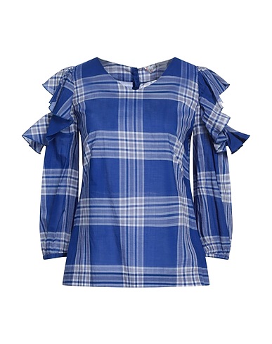 ruched top, woven, tartan pattern, no appliqués, v-neck, long sleeves, button fastenings, machine wash or dry clean, do not bleach, do not tumble dry