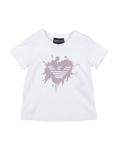 jersey, solid color with appliqués, crystals, brand logo, crewneck, short sleeves, machine wash, do not bleach, do not tumble dry, this brand runs small