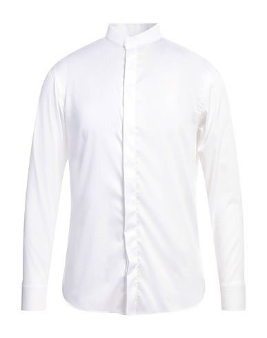 regular-fit shirt, twill, solid color, no appliqués, mandarin collar, long sleeves, concealed button fastenings, stretch, dry clean, do not bleach, do not tumble dry