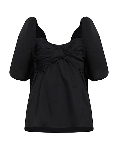 top, woven, solid color, no appliqués, deep neckline, short sleeves, stretch, machine wash or dry clean, do not bleach, do not tumble dry
