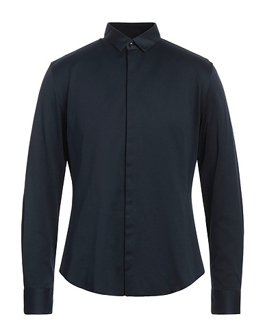 regular-fit shirt, jersey, solid color, no appliqués, classic collar, long sleeves, concealed button fastenings, hand wash or dry clean, do not bleach, do not tumble dry