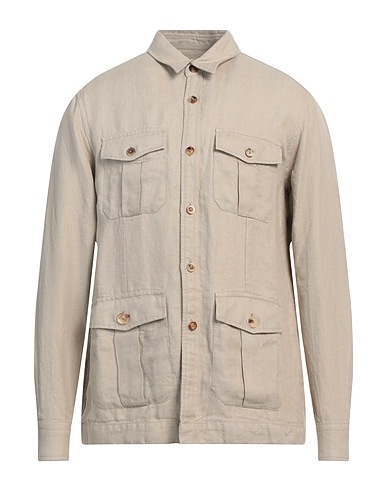 safari shirt, linen, solid color, no appliqués, classic collar, long sleeves, buttoned cuffs, button fastenings, pockets, dry clean, do not bleach, do not tumble dry