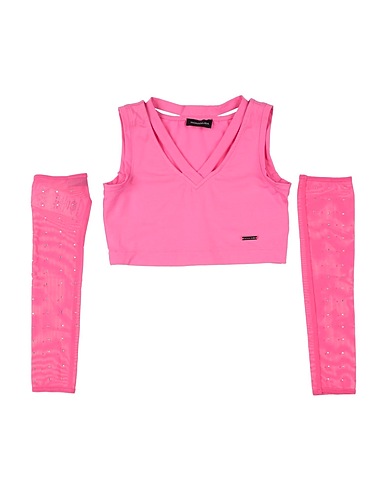 jersey, tulle, solid color with appliqués, crystals, brand logo, v-neck, sleeveless, stretch, 2-piece set, hand wash, do not bleach, do not tumble dry