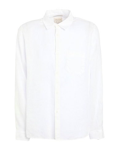 slim-fit shirt, linen, solid color, no appliqués, classic collar, long sleeves, buttoned cuffs, button fastenings, one chest pocket, machine wash or dry clean, do not bleach, do not tumble dry, this brand runs small