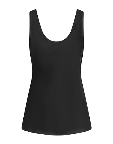 top, satin, solid color, no appliqués, scoop neckline, sleeveless, dry clean, do not bleach, do not tumble dry, do not iron