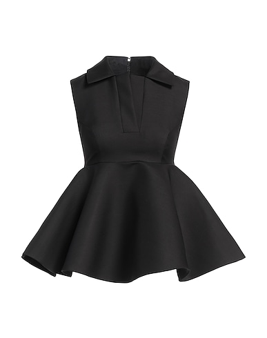 peplum top, cool wool, solid color, no appliqués, camp collar, sleeveless, zipper fastening, dry clean, do not bleach, do not tumble dry