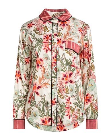 shirt, satin, floral-print, no appliqués, peter pan collar, long sleeves, buttoned cuffs, button fastenings, one chest pocket, stretch, dry clean, do not bleach, do not tumble dry