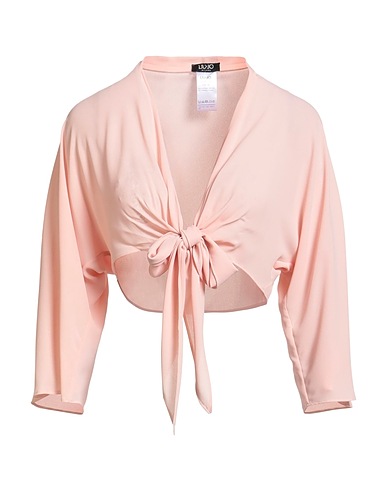 crop top, crepe, solid color, brand logo, draped neckline, long sleeves, tie fastening, machine wash or dry clean, do not bleach, do not tumble dry