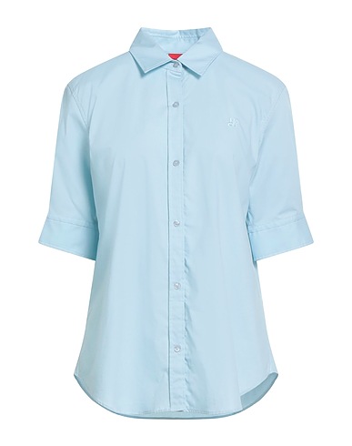 shirt, poplin, solid color, embroidered logo, classic collar, short sleeves, button fastenings, stretch, machine wash, do not bleach, do not tumble dry