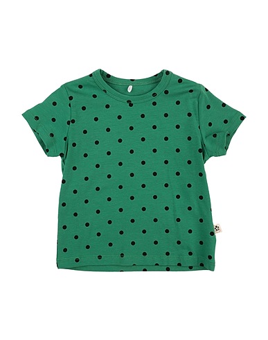 jersey, stretchy fabric, polka-dot, brand logo, crewneck, short sleeves, machine wash, do not bleach, do not tumble dry