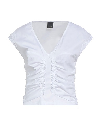 top, poplin, stretchy fabric, solid color, ruffles, gathered, v-neck, short sleeves, zipper fastening, machine wash or dry clean, do not bleach, do not tumble dry