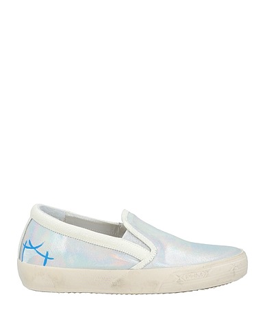 leather, metallic, brand logo, two-tone, leather lining, elasticized inserts, round toe, flat, rubber cleated sole, contains non-textile parts of animal origin, slip on