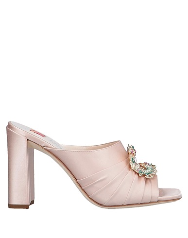 sandals, satin, solid color with appliqués, crystals, leather lining, square toe, square heel, leather sole, contains non-textile parts of animal origin