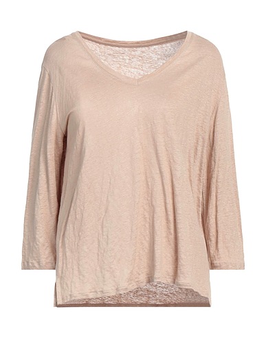 basic tee, jersey, solid color, no appliqués, v-neck, 3/4 length sleeves, side slit hemline, stretch