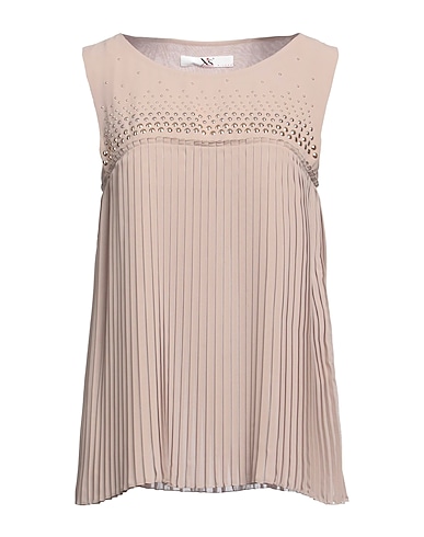 top, chiffon, solid color with appliqués, embellished, crewneck, sleeveless, unlined