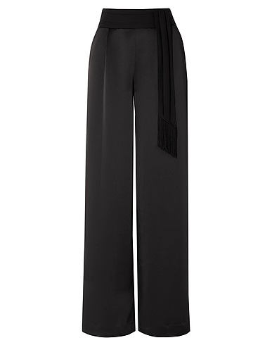 satin, fringes, solid color, high waisted, relaxed fit, zipper fastening, multipockets, wide-leg pants