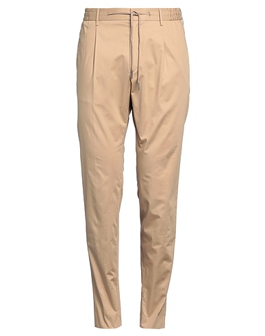 casual pants, woven, solid color, no appliqués, mid rise, drawstring waist, tapered leg, regular fit, zipper fastening, button fastenings, multipockets, stretch, dry clean, do not bleach, do not tumble dry